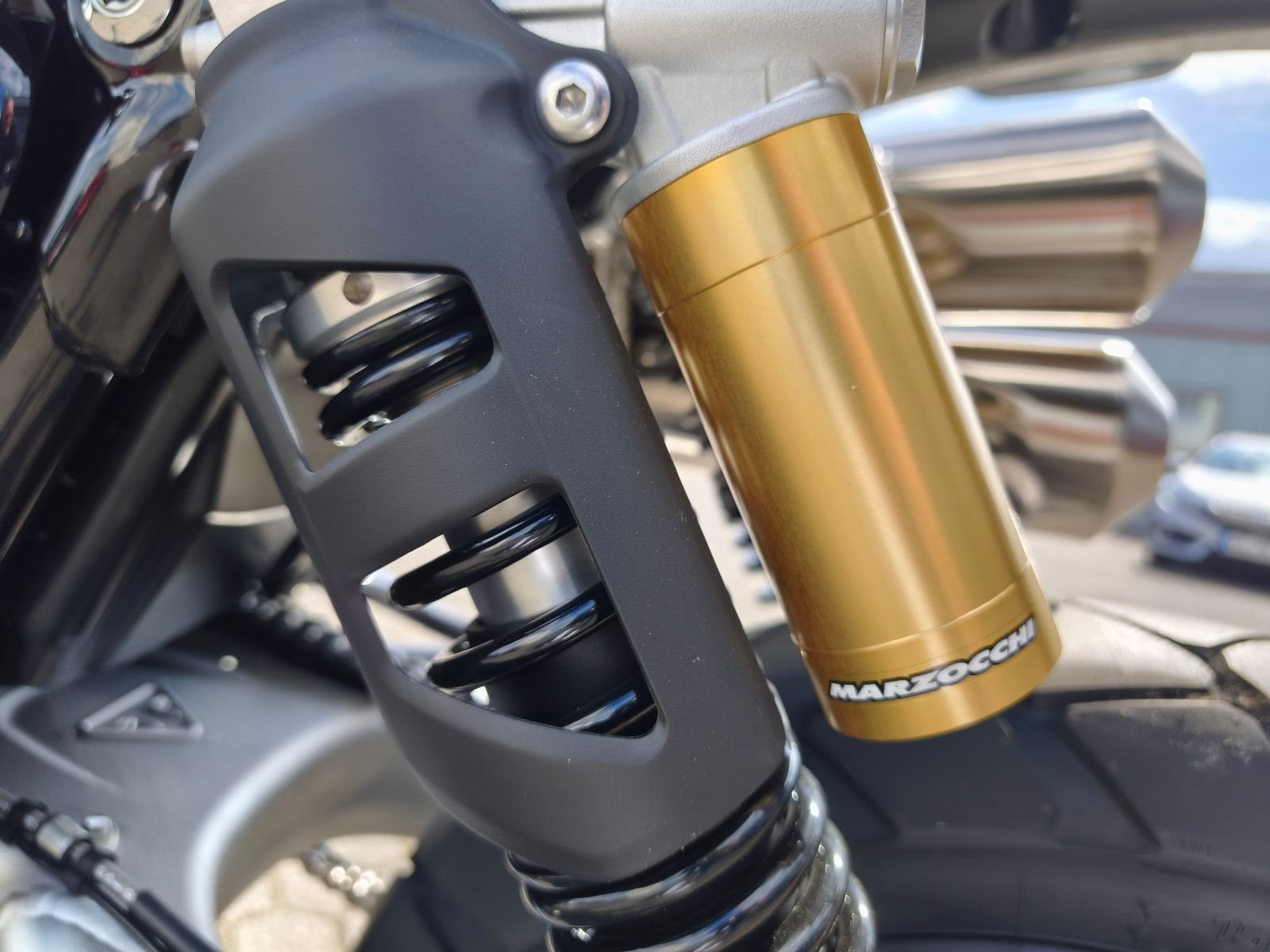 - Fahrwerk: 45 mm Marzocchi USD-Gabel (voll einstellbar), Marzocchi Stereo-Federbeine hinten, je 250 mm Federweg